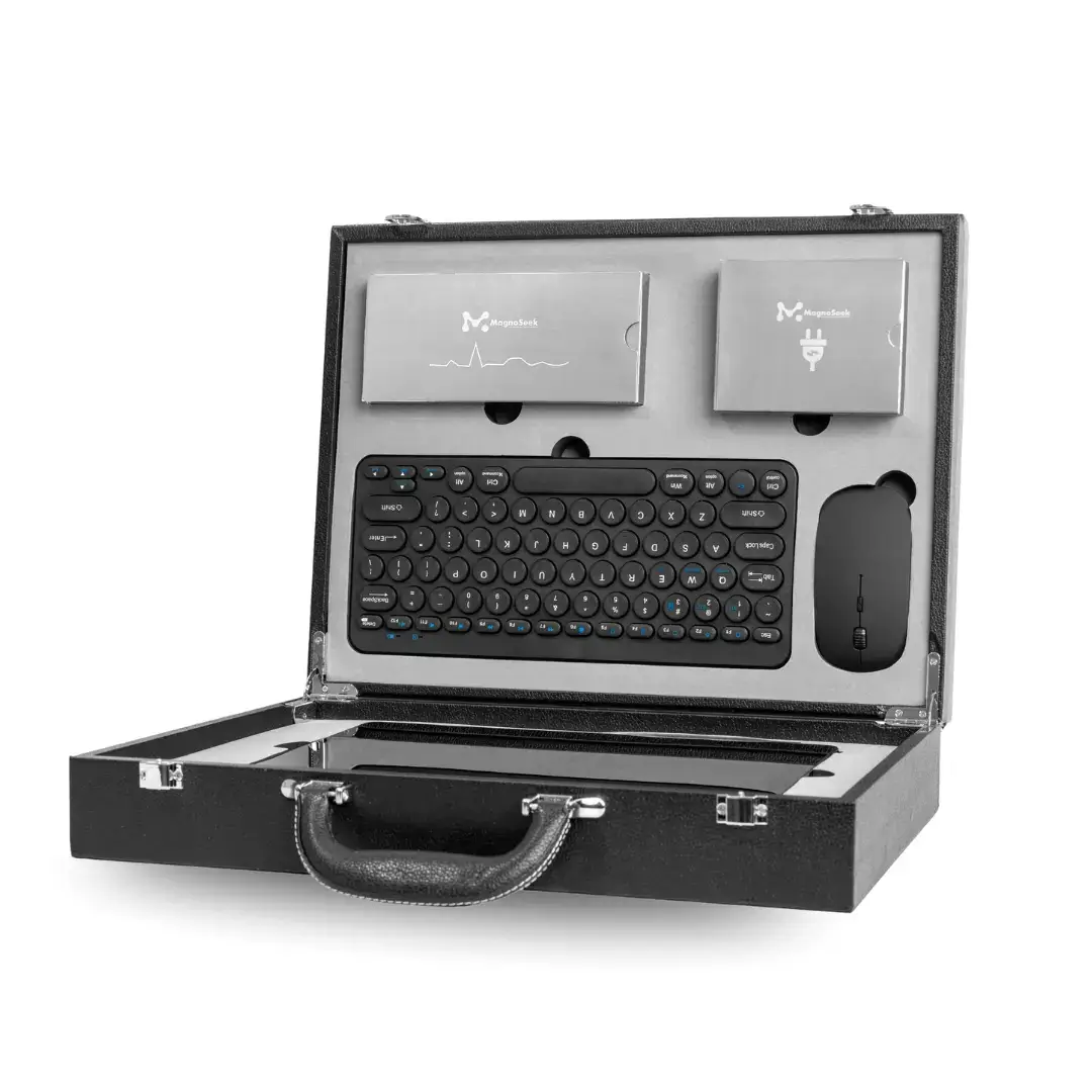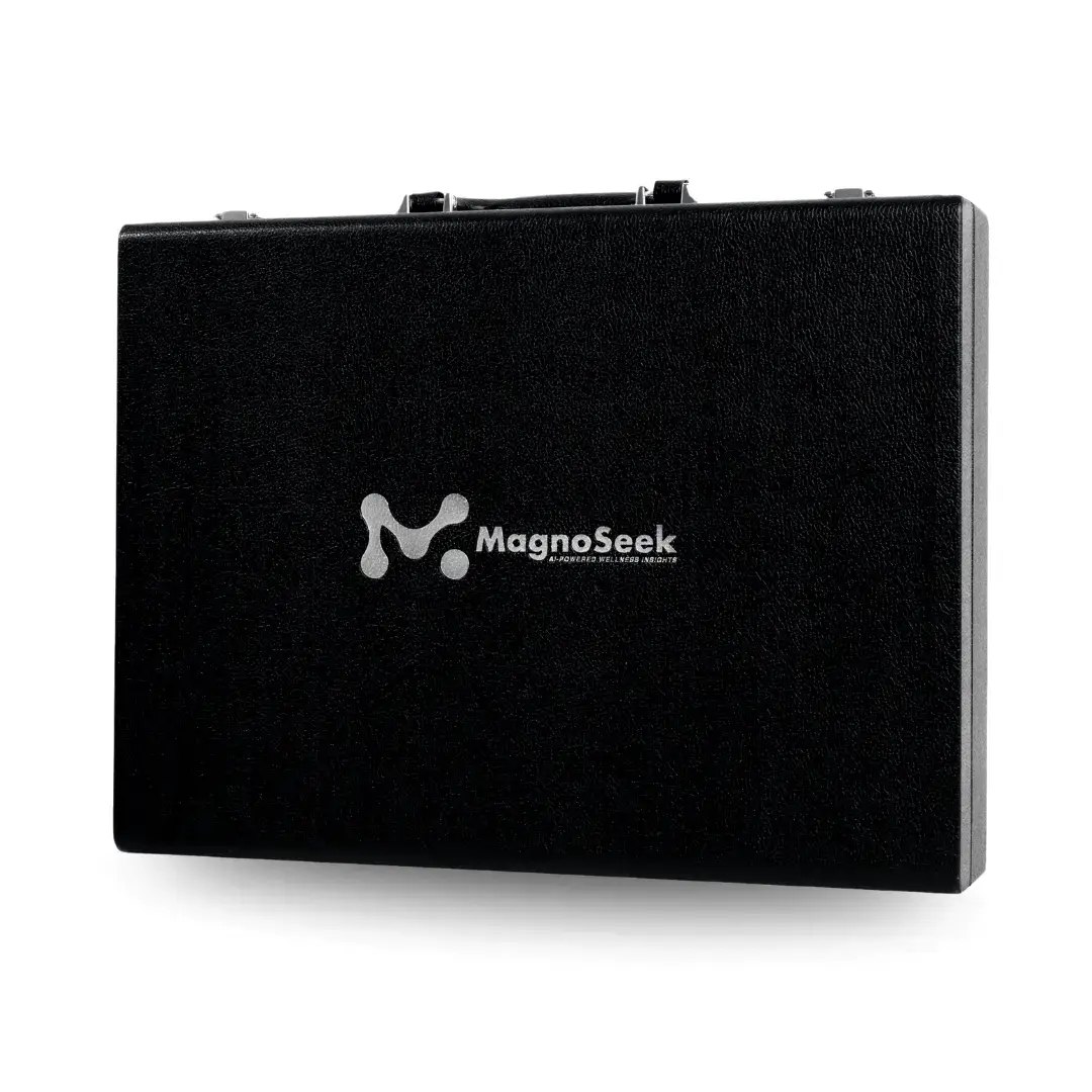 Reimagined with a new OS, upgraded interface, and AI-driven precision, the all-new MagnoSeek M19 delivers real-time wellness intelligence through a thinner, lighter, and more streamlined design, now complete with a portable case, keyboard, and mouse.